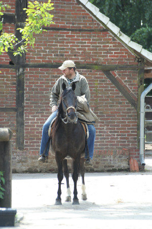 Juli 2007 und Januar 2008 eigenes Schaubild mit Spanier und Töltern , geritten von seiner Frau Ellen und Tochter Wiebke und selbst beritten mit PRE ( Zügeln am Gürtel) auf 2 großen Pferdeshows in Südfrankreich, Tarbes und Avignon.