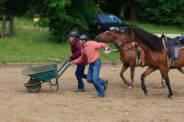 Am nächsten Morgen starteten wir dann in 2er Teams zu den Reiterspielen ins Gelände. Beginnend mit einem anspruchsvollen Fragebogen ( s.unten, hätten Sie es gewusst ? ), begleitet von einer Nudel die das ganze möglichst heil überstehen sollte erwarteten uns vielseitige und pfiffige Aufgaben. Für die Sieger gab es wunderschöne, von Thorsten handgemachte Holztölter.Nach dem Mittagessen gab es noch einen kleinen Ausritt für die, die noch Zeit und Lust hatten, einige machten sich langsam auf den zum Teil weiten Heimweg.