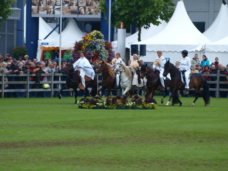 Wenn auch der Wettergott nicht nur auf der Seite der Gangpferde war, so blieben größere Duschen aus. Zur Erinnerung gab es für die Teilnehmer Plaketten und Schleifen, sowie das Wahnsinnserlebnis einmal im großen Springstadion vor 30 000 Menschen SEIN tolles Pferd zu zeigen. Bleibt nur noch Walter und dem Veranstalter (vertreten durch Jana Kun) herzlichen Dank zu sagen, dass wir unsere tollen Pferde einem neuen Publikum ausführlich näher bringen konnten.