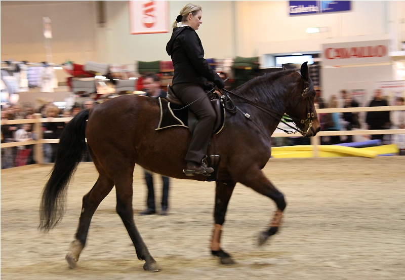 Auch dieses Jahr waren wieder einige Gangpferderassen auf der Equitana 2011 vertreten. Töltende Traber, Tennessee Walking Horses, Paso Peruanos, Paso Ibero Americanos und Mangalarga Marchador konnten die Besucher in zahlreichen Vorführungen in den Showzirkeln und in der großen Arena bewundern. Am Stand der IGV bekam der Interessierte zahlreiche Informationen zu den Vorzügen der jeweiligen Rassen mit ihren Spezialgängen.