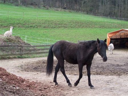 An fördernde Hände und Liebhaber zu verkaufen: Schicke, elegante, hochbeinige 2-jährige TWH-Jung-Stute (geboren am 13. August 2010) homozygot schwarz ohne jegliche Abzeichen. Sie ist freundlich, anhänglich, schmusig, neugierig und lernwillig. Sie kennt Hunde, Lamas, Ziegen, Shetty´s, Esel und Bachläufe, in denen sie sehr gerne entlang läuft, daher wird sie sicherlich auch für die Trail-Ausbildung interessant sein. Seit ihrer Geburt ist sie mit ihren Artgenossen in einem kleinen Herdenverband aufgewachsen. Sie kennt Pferdebox, Großraum-Paddock-Box, Offenstall,Laufstall, Pferdekoppel im Sommer 24 Stunden… Ihr Vater ist der Model-World-Champion "Postmark Delight", ihre Mutter "She´s A Pleaser" importierten wir 2007 aus USA, beide Pferde-Damen sind Barhufer!