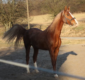 Komplettes Zubehör (u.a. 2 nwt. Kieffer-Sättel) kann mit verkauft werden. Amerikanische Papiere, interessante Abstammung.