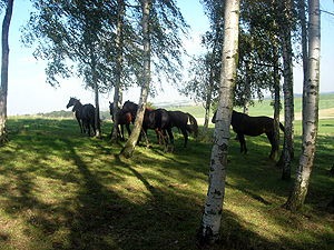 Die Pferde leben in artgerechter Haltung in kleinen Herden, immer mit der Möglichkeit sich frei zu bewegen.